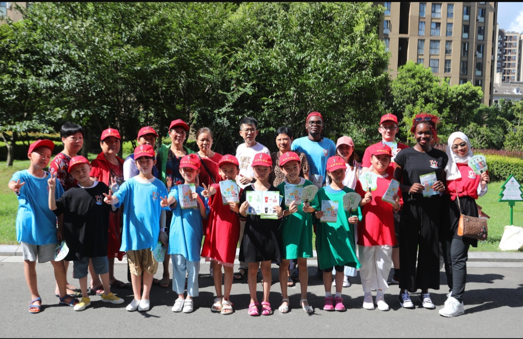 留学生走进镇海区庄市街道拉菲庄园参加了庄市同心湖社区组织的垃圾定时、定点分类投放宣传活动。