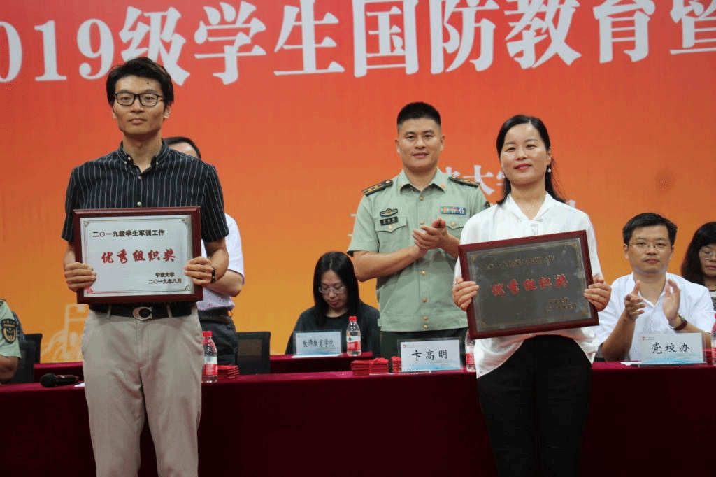 荣获了2019级学生军训优秀组织奖,成为本部仅有的两支获奖队伍之一。校党委副书记冯志敏同志、武警宁波支队参谋长卞高明中校为军训优秀组织的单位颁奖,91色情